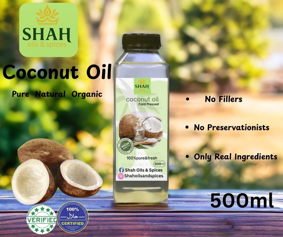 Coconut Oil – 100% Pure & Cold-Pressed – Hair, Skin & Cooking – Available in 500ml, 200ml, 100ml, 50ml